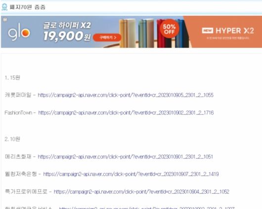 25일 일부 온라인 커뮤니티에서는 "포인트를 받아가라"며 여러개의 광고 링크를 모아서 게시하는 사례가 나타나고 있다. 광고 노출의 대가로 현금성 포인트를 지급하는 이벤트 광고들이 다수 있는데, 이를 모아서 한번에 클릭하기 쉽도록 만든 것이다.
