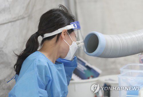 더위 식히는 선별진료소 의료진 |