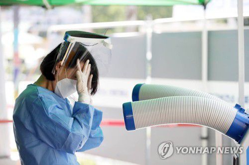 무더위 식히는 선별진료소 의료진 |