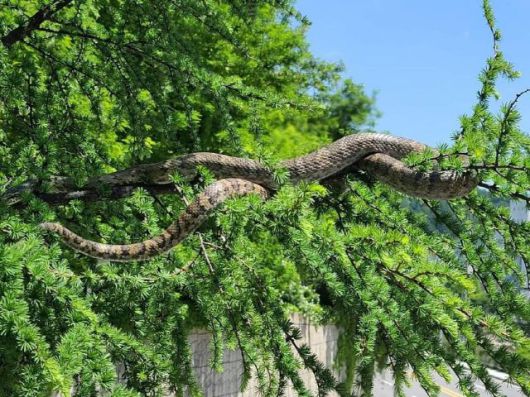 26일 다수의 온라인 커뮤니티에는 ‘태백에 아나콘다가?’ 등의 제목으로 거대한 뱀 사진을 담은 게시물이 올라왔다. 사진 속 뱀은 아마존에 서식하는 아나콘다처럼 긴 몸집을 이용해 나뭇가지 전체를 감고 있다.