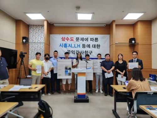 (시흥=연합뉴스) 최해민 기자 = 경기 시흥시 은계·목감·장현지구 주민 대표들이 수돗물 이물질(검은색 내부 코팅제) 발생 사태의 원인과 책임을 밝히기 위해 시흥시와 한국토지주택공사(LH)에 대한 공익감사를 청구하기로 했다.