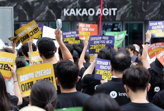 카카오 노동조합이 카카오와 계열사 경영진들을 규탄하며 단체행동을 개시했다. 노조는 카카오 창업주인 김범수 미래이니셔티브센터장에게 현 상황에 대한 개선이 필요하다는 내용이 담긴 항의서한을 전달했고, 사과를 요구했다.