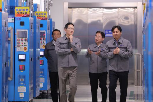 이재용 삼성전자 회장이 24일 중국 텐진에 위치한 삼성전기 사업장을 방문해 MLCC 생산 공장을 점검하고 있다. 텐진 공장은 부산사업장과 함께 글로벌 시장에 IT·전장용 MLCC를 공급하는 주요 생산 거점 중 한 곳이다. (삼성전자 제공) 2023.3.26/뉴스1 /사진=뉴스1화상 |