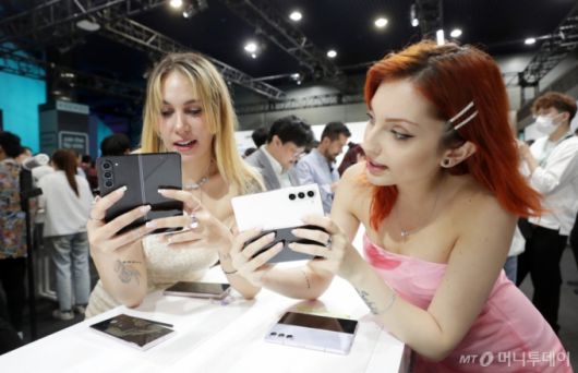 '갤럭시 언팩 2023'이 열린 26일 서울 강남구 코엑스에서 참석자들이 신제품을 체험하고 있다.