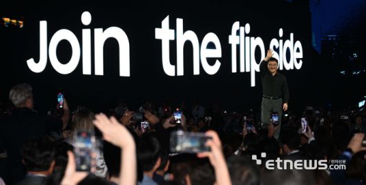 국내 첫 삼성전자 갤럭시 언팩 행사가 26일 서울 강남구 코엑스에서 열렸다. 노태문 삼성전자 MX사업부장 사장이 손 흔들며 인사하고 있다. 이동근 기자 foto@etnews.com [Copyright © 전자신문. 무단전재-재배포금지]
