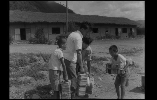 정전협정이 발표된 7월 27일 초등학교 6학년 국어책을 인쇄해 이송하는 장면(사진=한국영상자료원) |