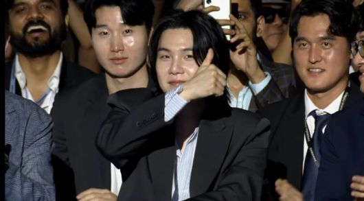 언팩에 직접 참석한 BTS 슈가는 갤럭시Z폴드5 소개 도중 등장했다. 영상을 통해 갤럭시Z폴드5의 기능 관련 질문을 던진 슈가는 삼성전자 관계자 설명 이후 "(갤럭시Z폴드5에 대해) 어떻게 생각해?"라는 질문에 직접 현장에서 엄지를 치켜세우는 모습을 보여줬다.