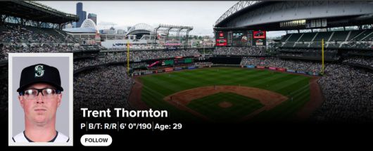 토론토를 떠나 시애틀 유니폼을 입게 된 투수 트렌튼 손튼. 캡쳐 | 시애틀 홈페이지 |