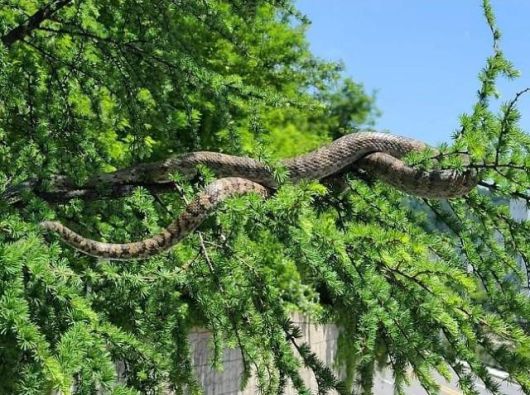 27일 뉴스1에 따르면 지난해 태백 장성동에 위치한 장성광업소 인근에서 수 미터에 달하는 뱀이 나뭇가지를 감싸고 있는 모습이 포착됐다.