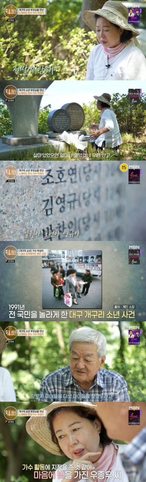 가수 박성미는 지난 1991년, 사건이 발생했을 당시 곡 ‘개구리 소년’을 발매해 아이들의 부모님과 전국을 돌며 아이들을 찾아나섰다. 하지만 아이들이 사망된 채 발견되자 박성미는 가요계 은퇴를 선언, 방송계에서 모습을 볼 수 없었다.