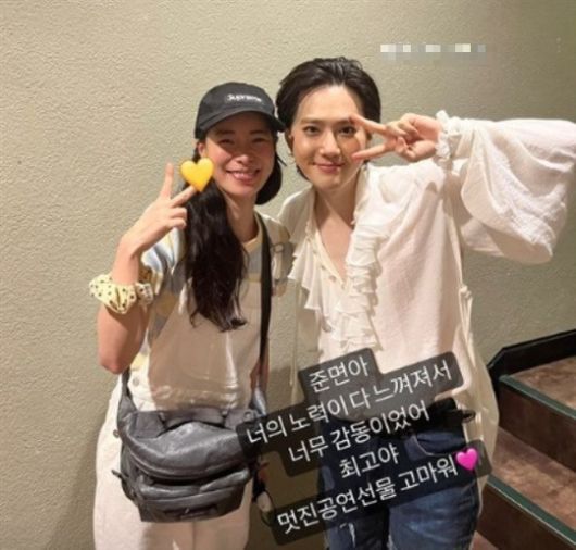 28일 배우 임지연은 자신의 채널에 "준면아 너의 노력이 다 느껴져서 너무 감동이었어 최고야 멋진 공연 선물 고마워♥"라는 글과 함께 한 장의 사진을 게재했다.