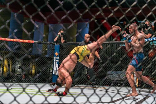 그라운드에 누워서 다리를 든 채 견제하는 상대를 공격하기 위해 텀블링하고 뒤꿈치로 얼굴을 밟고, 프로 레슬링처럼 케이지를 타고 넘어가 플라잉 니킥을 날린다.