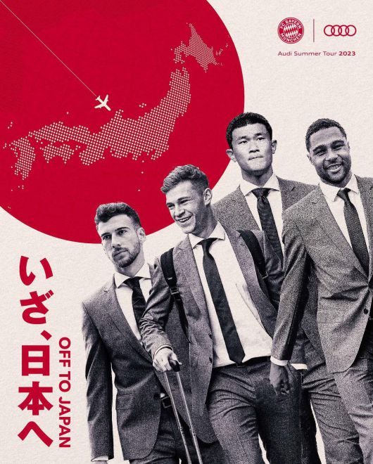 뮌헨은 23일 아시아 투어 명단에 참여하는 선수들의 명단을 공식 홈페이지로 공개하며, 메인 사진에 김민재의 얼굴을 올려둬 아시아 투어 핵심 선수임을 확인시켰다. 이후 느와르풍의 이번 일본 투어 포스터까지 공개했는데, 해당 포스터에는 정장을 입은 레온 고레츠카, 요슈아 키미히, 세르지 그나브리와 함께 김민재가 자리하며, 다시 한번 존재감을 과시했다.