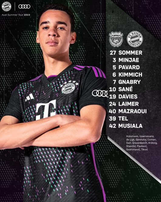뮌헨은 29일(한국시간) 구단 공식 SNS 계정을 통해 오후 7시 도교국립경기장에서 열리는 가와사키와의 프리시즌 친선전 선발 라인업을 발표했다.