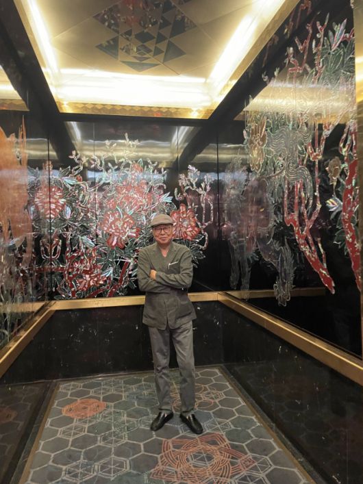 전 작가는 목재 회사에서 일하던 젊은 시절 우연히 옻칠의 매력에 빠졌다. 식탁 등 가구에 장식을 하며 칠예가로 살던 그는 어느 날 밥상 1000개에 옻칠을 해달라는 주문을 받는다. 일본 도쿄 ‘메구로가조엔’ 식당에서 사용되는 밥상이었다. 메구로가조엔은 8000여 평 규모를 자랑하는 일본 최초의 호화 연회장이다. 1930년대에 지어진 이곳의 벽 장식은 대부분 거대한 나전옻칠공예로 꾸며져 있는데 대부분 작품에 주름질·꺾음질 등 조선의 전통 기법이 적용됐다. 일제강점기 일본으로 건너간 조선의 옻칠 장인들의 솜씨다.
