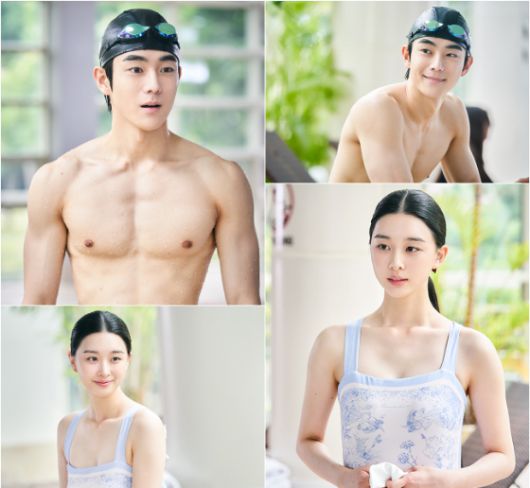 그런가 하면 유정후와 이다연은 '수영장 데이트' 장면을 촬영하는 내내 유쾌한 웃음과 밝은 에너지를 전달해 현장에 기운을 북돋웠다. 특히 유정후는 쉬는 시간 수영 연습을 해보며 실력을 뽐내는 가하면 이다연과 수영에 관한 경험을 털어놓는 등 돈독함을 드러냈다. 더불어 현장에서는 유정후와 이다연의 수영장 장면이 돋보이도록 다양한 장치를 활용, 여러 가지 각도에서 촬영을 시도했던 상태. 이로 인해 풋풋한 두 사람이 맑은 물의 수영장과 맞물려 청량한 시너지를 터트린 장면이 완성됐다.