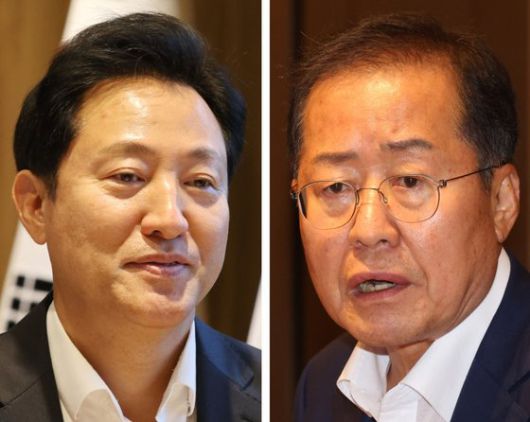 여권의 잠재적 대선 주자로 꼽히는 오세훈 서울시장과 홍준표 대구시장이 30일 엇갈린 메시지를 발신했다.