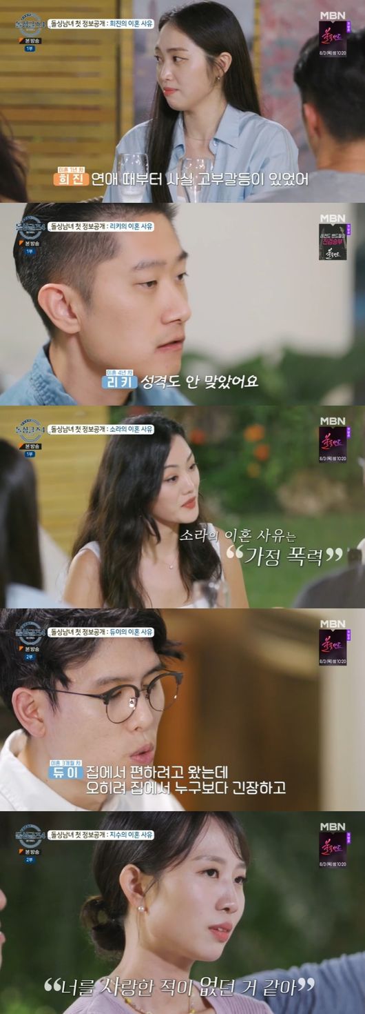 30일 방송된 MBN '돌싱글즈4'에서는 각자 이혼 사유를 공개하는 돌싱남녀들의 모습이 그려졌다.