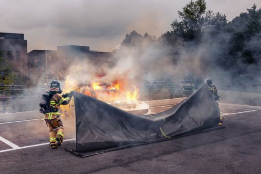 이와함께 질식소화포 중앙에 반사 테이프 표시선이 있어 어두운 장소에서도 차량 중앙부에 적용하기가 쉽다. 이음부는 화염 노출을 완벽하게 차단하는 구조로 만들었고, 각 모서리에 내열섬유 손잡이를 적용해 위급한 상황에서 빠르고 안전하게 대처하기 유용하다.