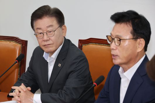 | 이재명 더불어민주당 대표가 오늘(31일) 국회 당 사무실에서 열린 최고위 회의에서 박광온 원내대표의 발언을 듣고 있다. / 사진 = 연합뉴스 |