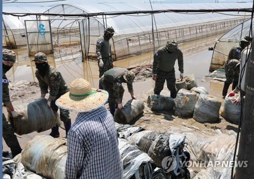 35사단은 지난달 19일부터 이날까지 농지 대부분이 침수된 망성면, 용안면, 용동면 일대에 연인원 1만3천여명의 군 장병과 500여대의 장비를 투입했다.