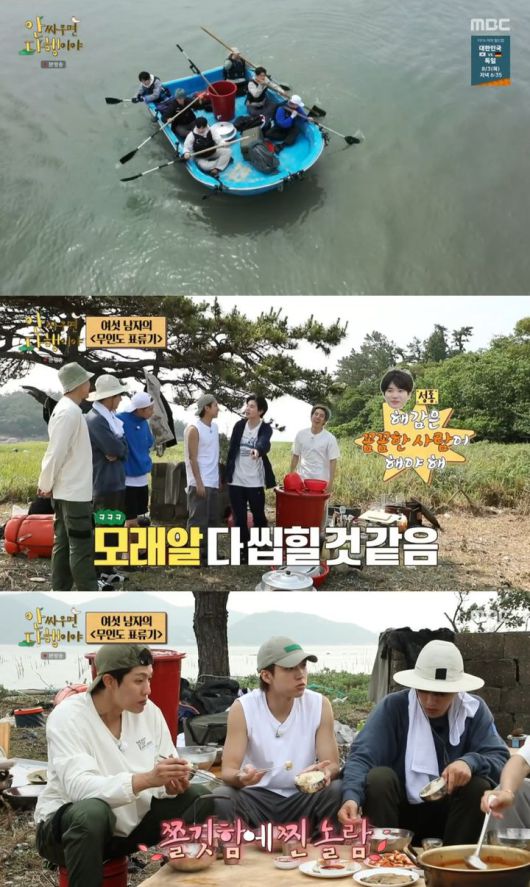 작은 보트를 타고 열심히 노를 저으며 무인도에 진입한 멤버들은 먼저 먹을 것을 구하기 위해 갯벌로 향했다. 호기롭게 발걸음을 옮기다 갯벌에 곤두박질친 이성종은 두 발로 걷기를 포기하고 사족 보행을 했다. 이성열 또한 무릎까지 갯벌 속 깊숙이 박힌 채로 코 앞에 있는 칠게를 잡지 못하는 모습으로 웃음을 불러왔다.