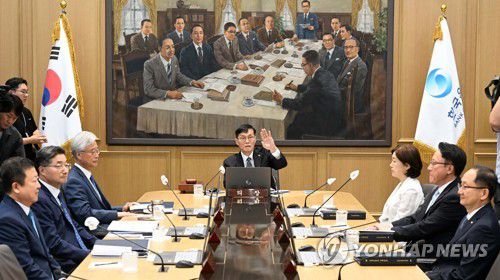 (서울=연합뉴스) 박대한 기자 = 한국은행 금융통화위원들은 지난달 13일 '전원 일치'로 기준금리 4회 연속 동결(3.50%)을 의결하면서도 향후 물가 흐름과 경제 성장 경로, 가계부채 추이 등에 따라 추가 인상 가능성을 열어둬야 한다는 의견을 밝혔다.