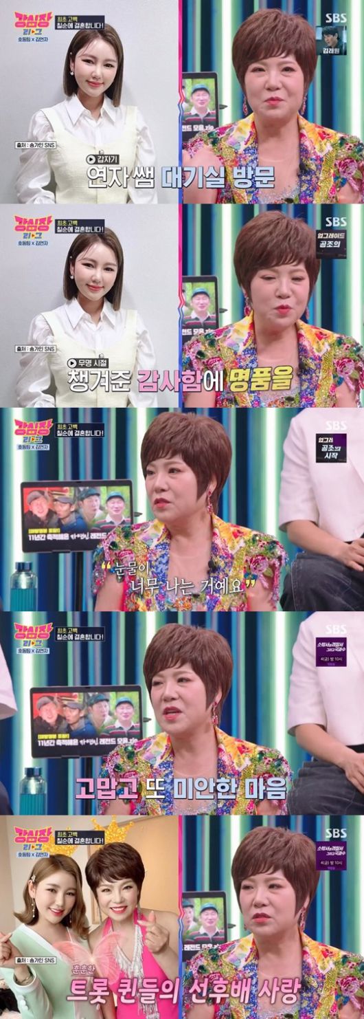이날 김연자는 송가인으로부터 명품 선물을 받았다고 말했다. 김연자는 "가인이와 같은 프로그램을 하는데, 대기실로 명품가방을 들고 찾아왔더라. 무명시절에 챙겨줘서 고맙다고." 라고 말했다. 김연자는 "눈물이 너무 나는 거예요, 고맙고 미안해서" 라며 "받은 선물을 돌려보냈다" 라고 말했다.