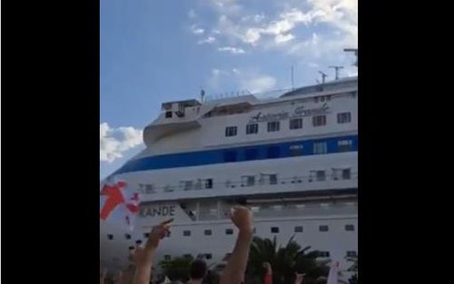그중에는 유람선을 향해 달걀을 던지거나 승객들에게 당장 떠나라고 요구하는 사람들도 있었다.