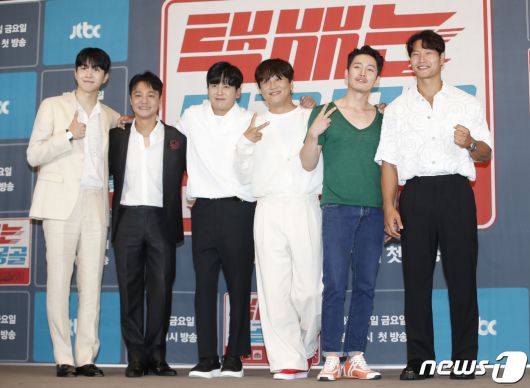 JTBC 새 예능 프로그램 '택배는 몽골몽골'(연출 김민석, 박근형) 제작발표회는 2일 오후 서울 강남구 잠원동 더 리버사이드 호텔에서 열렸다. 행사에는 연예계 대표 절친 '용띠클럽'의 김종국, 장혁, 차태현, 홍경민, 홍경인과 배우 강훈, 김민석 PD, 박근형 PD가 참석했다.