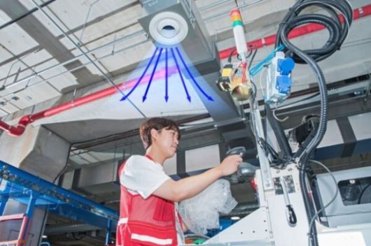 쿠팡 고양1센터에서 직원이 천장형 국소 에어컨 바람을 맞으며 업무하고 있는 모습. [사진=쿠팡 뉴스룸] |