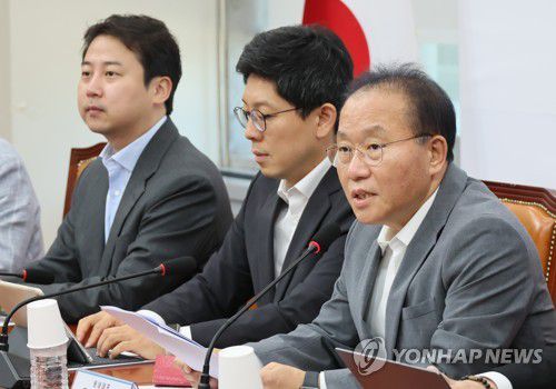 (서울=연합뉴스) 김연정 안채원 기자 = 국민의힘 윤재옥 원내대표는 3일 더불어민주당 김은경 혁신위원장이 "윤석열 밑에서 임기를 마치는 게 치욕스러웠다"고 말한 데 대해 "그렇게 치욕스러웠으면 스스로 중도사퇴하는 게 떳떳한 태도였을 텐데 연봉 3억을 꼬박 다 챙기고 나서 이 무슨 염치없고 위선적인 망발인가"라고 말했다.