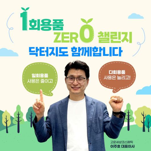 3일 고운세상코스메틱에 따르면 이주호 대표가 지난 2일 닥터지 공식 인스타그램 계정에 1회용품 사용을 줄이고 다회용품 사용을 늘리겠다는 약속과 함께 제로 챌린지 동참을 의미하는 손동작을 취한 사진을 올렸다. 향후 회사 모든 구성원과 함께 제품은 물론 일상 속 다회용품 사용을 실천하며 친환경 경영을 확대해 나갈 방침이다.