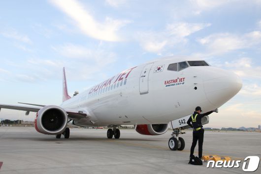 (서울=뉴스1) = 이스타항공이 올해 세 번째 도입기이자 두 번째 차세대 항공기인 6호기(HL8542) 도입을 완료했다고 4일 밝혔다. 이스타항공의 6호기(HL8542)는 항공기 안전검사인 감항 검사를 거친 후 국내선 증편에 투입되고 9월 2일 김포-타이베이(송산) 노선을 시작으로 국제선에 투입된다. 사진은 3일 김포공항 계류장으로 들어오는 이스타항공 6호기. (이스타항공 제공) 2023.8.4/뉴스1