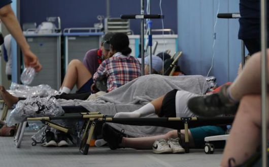 3일 오후 전북 부안군 새만금 세계스카우트 잼버리 야영지 내 잼버리 병원에서 온열질환자가 치료를 받고 있다. 부안=연합뉴스 |