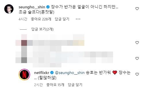 이를 본 넷플릭스 코리아는 "승호는 반가워 ♥ 장수는 ... (할많하않)"이라는 답글을 남겨 웃음을 줬다.