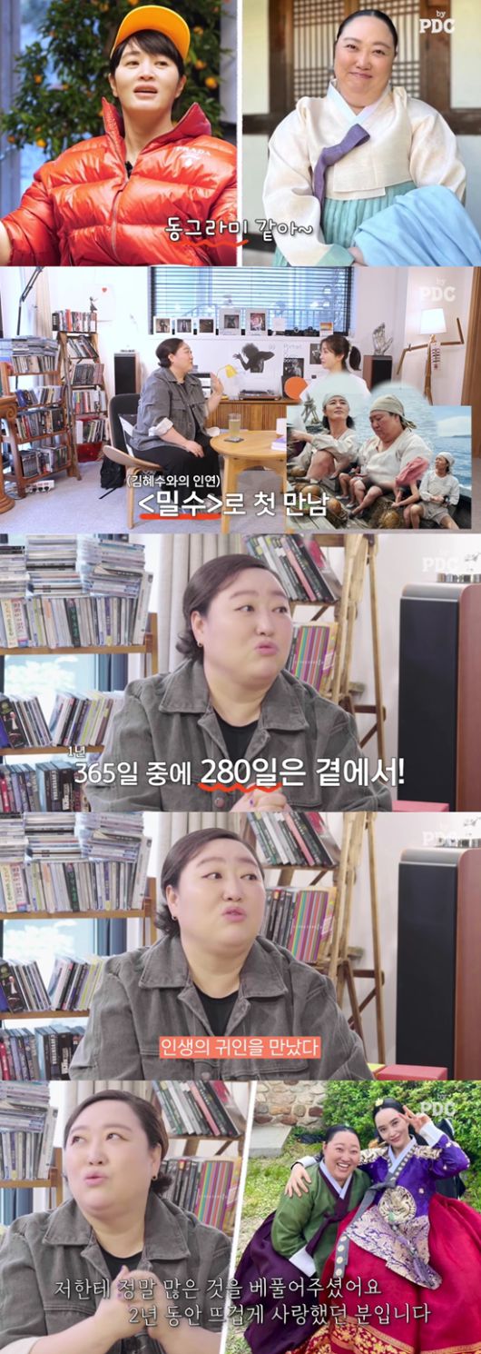김혜수와 영화 '밀수'로 처음 만났다는 박준면은 "'밀수'를 먼저 촬영해서 (김혜수와) 인연을 맺고, 다음에 '슈룹'에서 중전과 상궁으로 만났다. 근 2년을 매일 붙어 있었다고 까진 못하지만 365일 중 280일은 붙어 있었다"고 말했다.