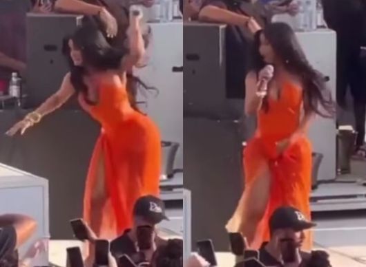 관객이 찍은 영상을 보면 금색 미니 원피스를 입고 무대에 오른 카디비는 자신의 노래 'WAP' 무대 도중 중요 부위에 손을 얹고 엉덩이로 원을 그리는 동작을 선보였다. 이 과정에서 카디비는 관객에게 속옷을 입지 않은 하반신과 실이 달린 탐폰을 노출했다.
