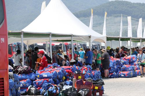 대표단은 영지 내 집결지인 제1 주차장에 모여 3시간가량 대기한 뒤 준비한 버스 23대를 이용해 출발했다.