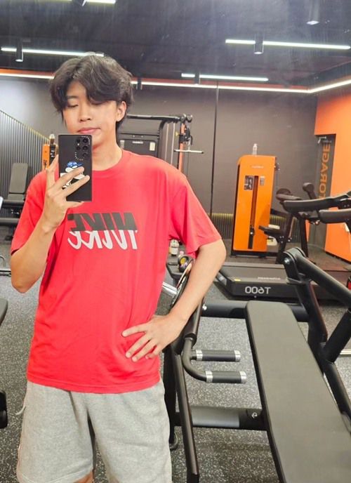 이번에 함께 공개된 사진에는 편안한 차림으로 헬스장에 운동하러 간 임영웅의 모습이 담겨 있다. 임영웅은 거울을 통해 비친 자신의 모습을 셀카로 남기고 있다.