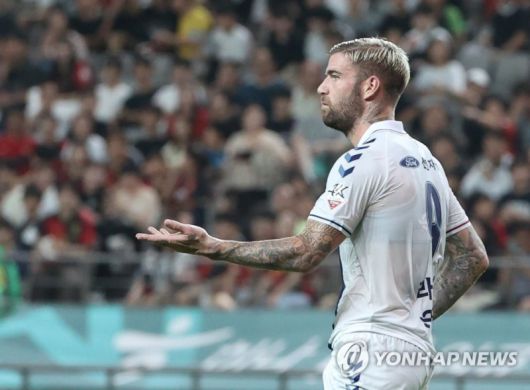 항의하는 라스 (서울=연합뉴스) 김성민 기자 = 12일 오후 서울월드컵경기장에서 열린 프로축구 K리그1 22라운드 FC 서울와 수원 FC의 경기. 수원 라스가 오프사이드 판정에 항의하고 있다. 2023.7.12 ksm7976@yna.co.kr (끝) |
