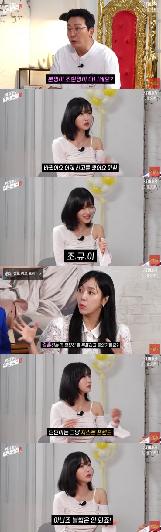 영상에서 탁재훈은 "본명이 조현영이 아니다"라고 말을 꺼냈고 조현영은 "이름이 별로 안 좋다고 해서 바꿨다. 마침 어제 신고를 했다"고 알렸다. 이어 "조규이(로 바꿨다)"고 밝혔다.