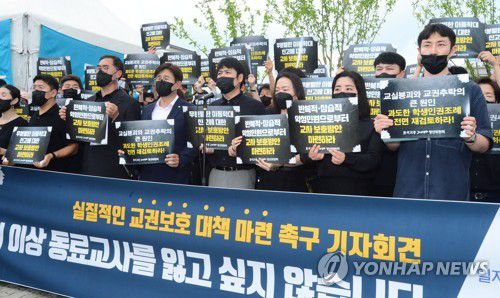(서울=연합뉴스) 설승은 기자 = 교권 추락이 사회 문제로 떠오른 가운데 국민 10명 중 7명 이상은 교사의 정당한 훈육에 대한 아동학대 면책권 부여에 찬성한다는 여론조사 결과가 9일 나왔다.