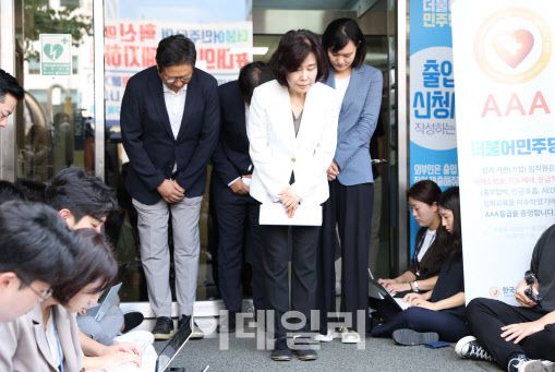 김은경(가운데) 더불어민주당 혁신위원장이 3일 오전 서울 영등포구 여의도 중앙당사에서 기자회견을 갖고 ‘노인 폄하’ 발언에 대해 사과하고 있다.(사진=노진환 기자) |