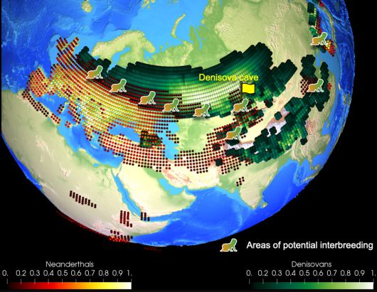 이어 두 호모종 간 상호 교배가 이뤄진 장소와 시기도 추정했다. 지구 자전축과 공전궤도로 인한 기후변화는 인류 서식지에 영향을 미친다. 시뮬레이션에 따르면 지구 공전궤도가 더 타원형이고, 북반구의 여름에 태양과 지구가 서로 가까이 있을 때 호모종 간 서식지가 지리적으로 겹쳤다. 알타이산맥, 사르마틱 혼합림, 이베리아 반도 등 북유럽 및 중앙아시아지역에서 공존 시기 중 최소 6번의 상호작용이 있었을 것으로 추정했다.