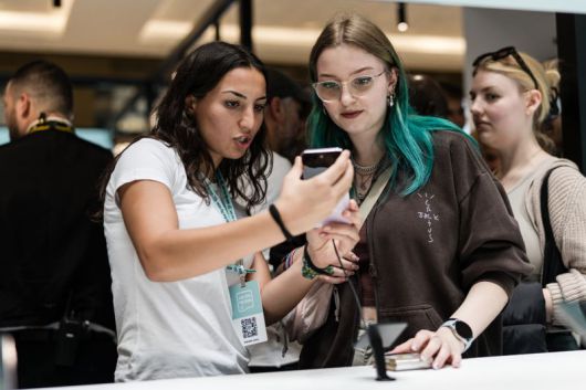 9일(현지시간) 독일 베를린 '갤럭시 익스피리언스 스페이스'에서 방문객이 '갤럭시Z플립5'를 체험하고 있다. 삼성전자 제공 |