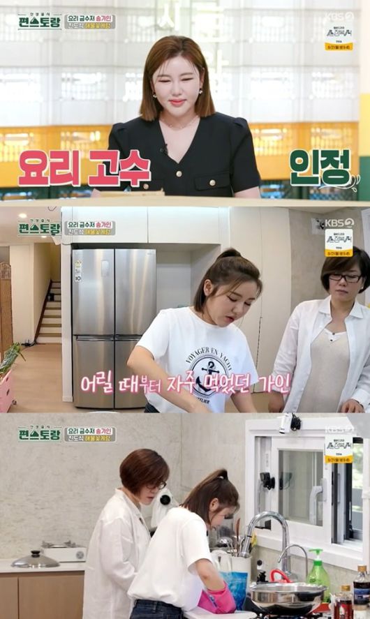 송가인은 지난 11일 오후 9시 10분 방송된 KBS2 ‘신상출시 편스토랑’에 출연, 부모님의 손맛을 그대로 물려받은 요리 실력을 선보였다.