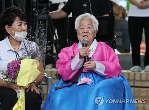 (경기광주=연합뉴스) 류영석 기자 = 12일 경기도 광주 나눔의집에서 열린 2023 일본군 '위안부' 피해자 기림의날 기념식에서 이옥선 할머니(부산 출생)가 참석해 발언하고 있다. 2023.8.12 ondol@yna.co.kr ▶제보는 카카오톡 okjebo▶연합뉴스 앱 지금 바로 다운받기~▶네이버 연합뉴스 채널 구독하기 <저작권자(c)연합뉴스. 무단전재-재배포금지.>