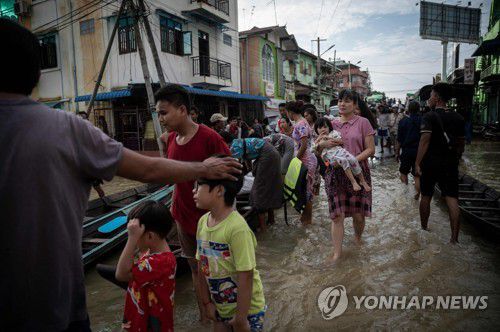 (양곤[미얀마]=연합뉴스) 이정호 통신원 = 7월 중순부터 미얀마 전역에 계속된 폭우로 인한 홍수로 동부와 서부지역에서 총 6만여 명에 이르는 수재민이 발생한 것으로 알려졌다.