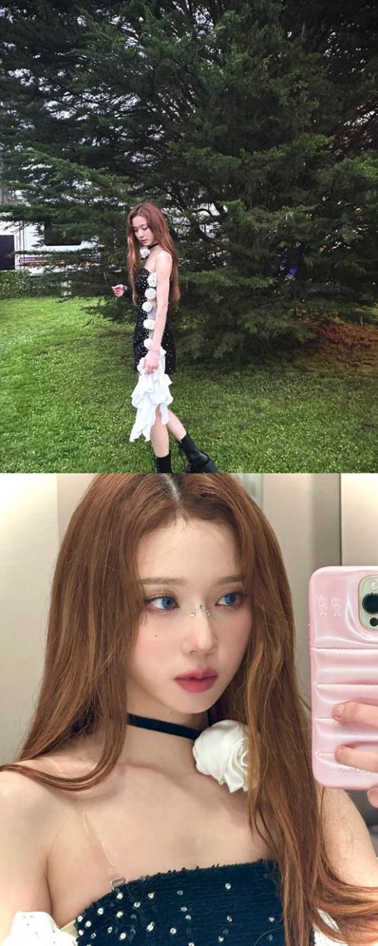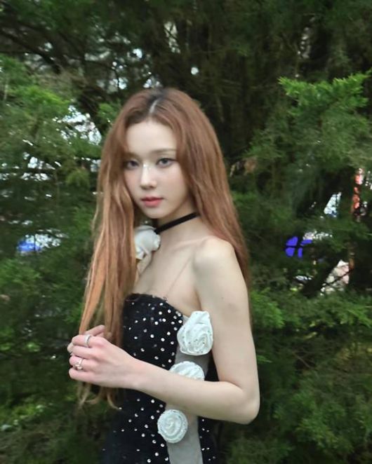 윈터는 장미 장식의 원피스를 입은 채로 카메라를 응시해 우아한 분위기를 뽐낸다. 더불어 화려한 이목구비를 자랑하는 미모를 보여줘 시선을 모은다.